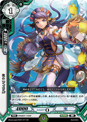 Fyrill (フィリル Firiru) is a foreigner associated with the color green, the world of Monolium, and the Blue Beast attribute.